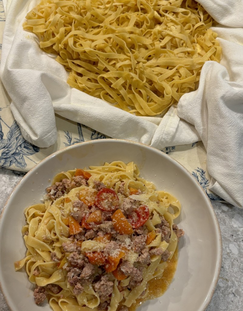 Yet, while all of the hand stuffed and formed pastas are special, there’s nothing quite like a bite of fresh cut fettuccini or as Anthony Bourdain called the “working-class” pasta. It’s complex in its simplicity. It fills the stomach and the heart. Pictured here, I elevated the “working-class” pasta with a fresh summer bolognese. The dish couldn’t have been more magical!